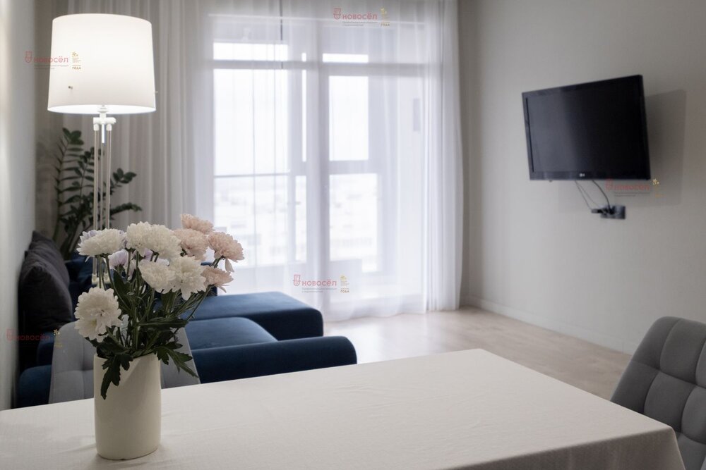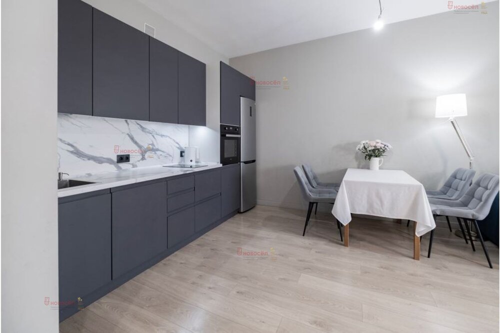 В квартире комфортная планировка: просторная кухня-гостиная 41,8 м2, спальня с зоной кабинета 15,3 м2, в спальне большой шкаф-купе, два санузла (один с ванной, второй с душевой кабиной), гардероб. Ремонт закончен в ноябре 2024.