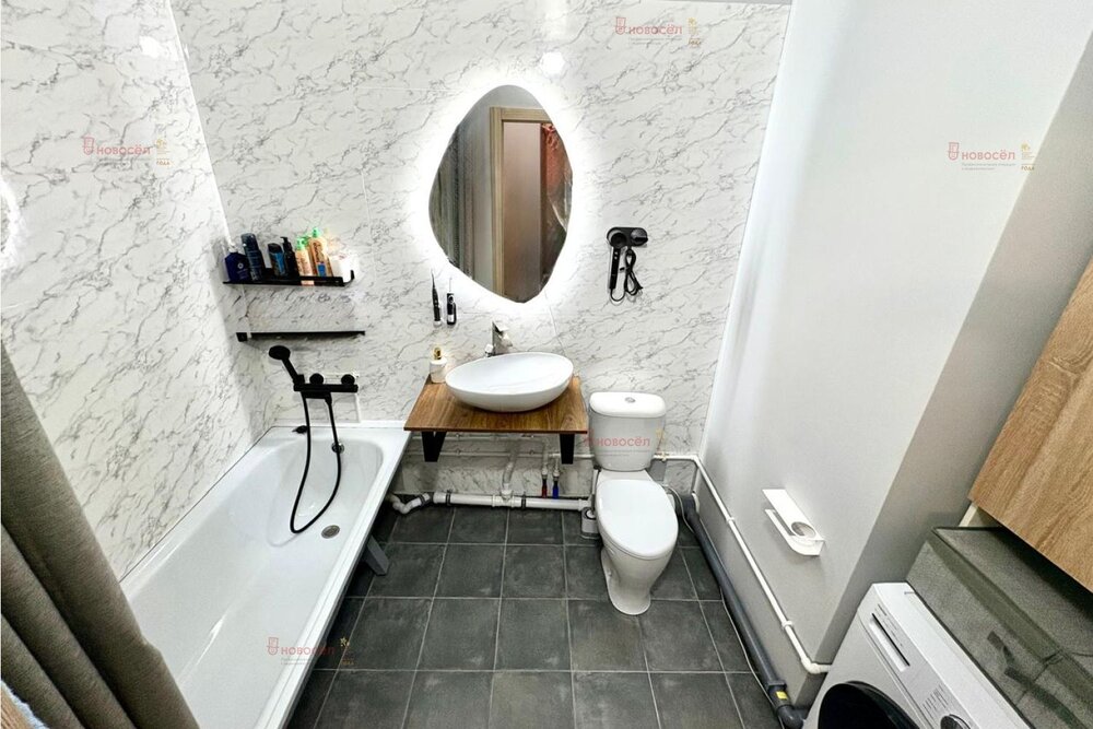 В квартире выполнен ремонт от застройщика в светлых оттенках: ламинат, двери с фурнитурой, натяжные потолки, обои под покраску, в санузле плитка на полу и стены покрашены вододисперсионной краской, установлен унитаз, раковина, поддон. Горизонтальная разводка отопительных труб.