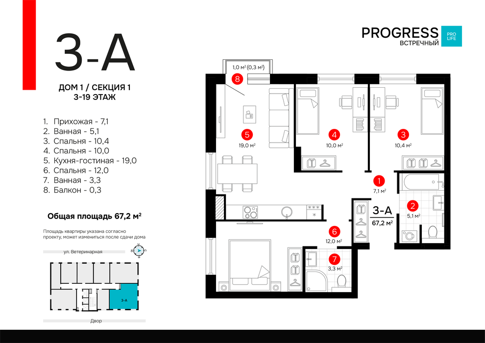 Продажа квартиры: Екатеринбург, ул. Встречный – Ветеринарная, 1-3, ЖК “PROGRESS Встречный” (Дом 1)