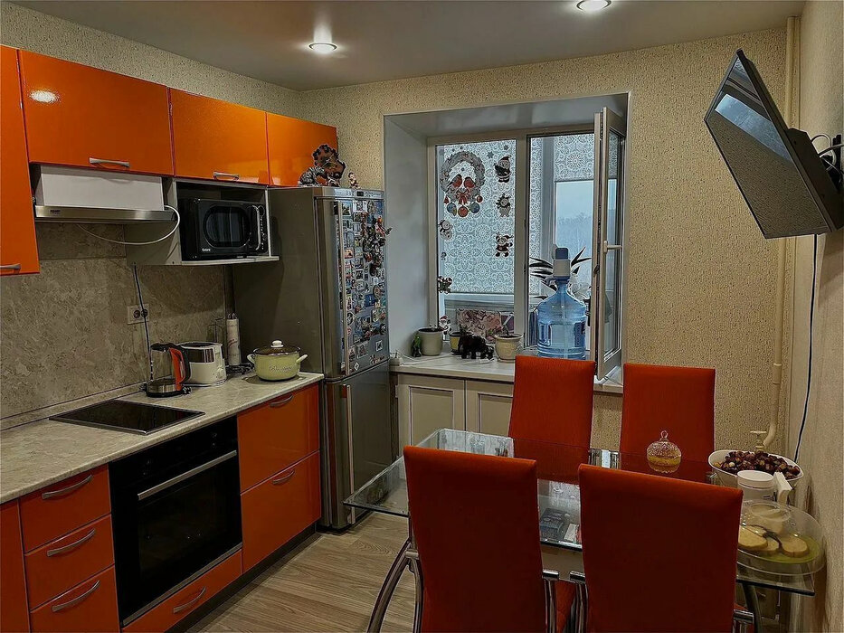 В квартире выполнен ремонт - обои, натяжной потолок, ламинат. Остается кухонный гарнитур с раковиной и смесителем, варочная поверхность, холодильник, обеденный стол, стулья. Также готовы оставить - кровать, тумбы, диван, 2 кресла, журнальный стол.