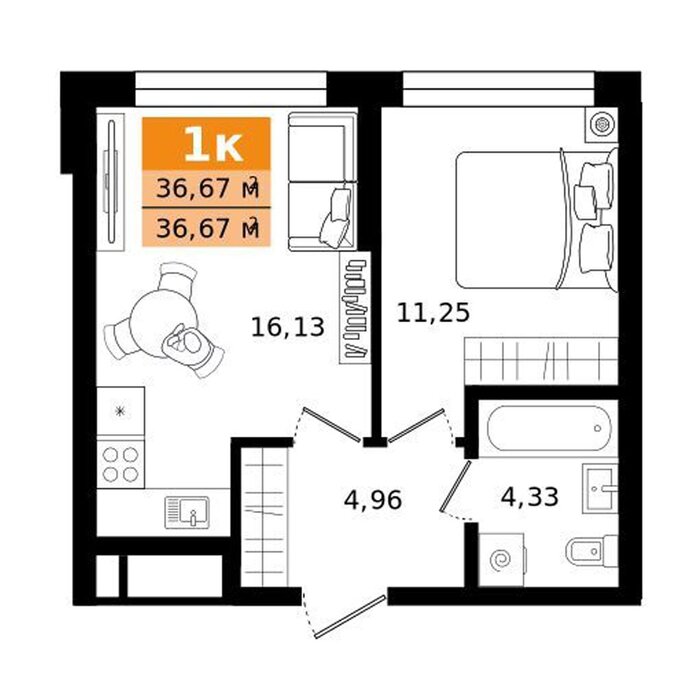 Общая площадь:36.67 м2