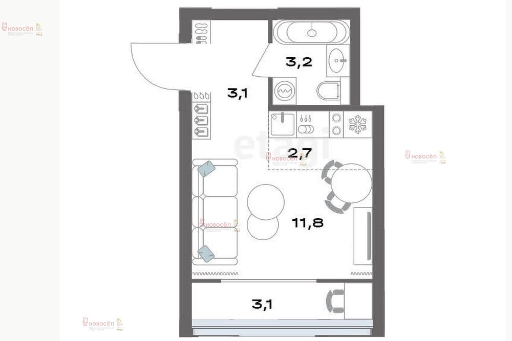 Студия выполнена в комфортных пастельных тонах, чистая и светлая!