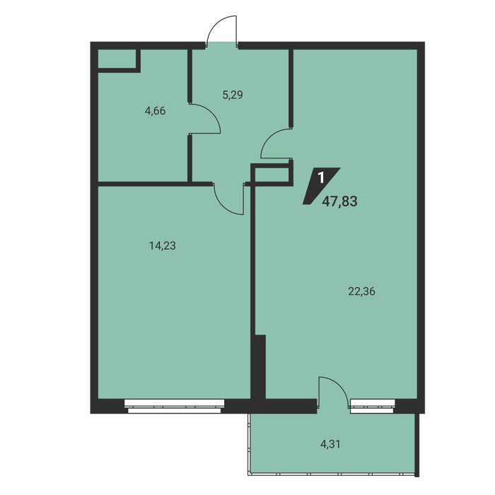 Общая площадь:47.83 м2