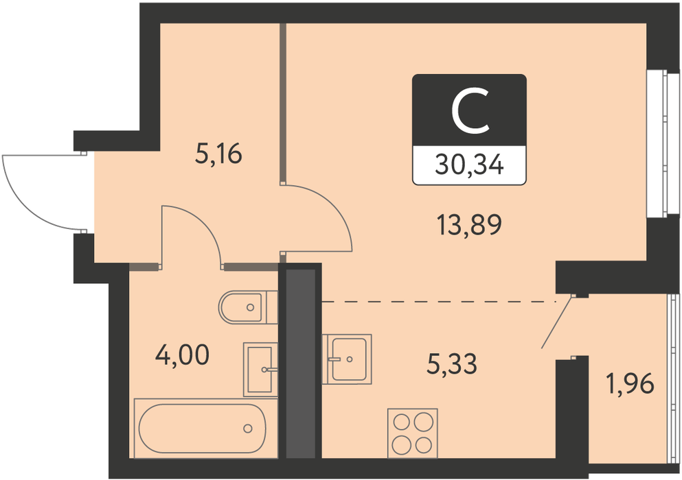 Продается студия площадью 29.36 кв.м. от девелопера «Академический» в жилом квартале «Спутник 1». Срок сдачи дома в 2027 году.