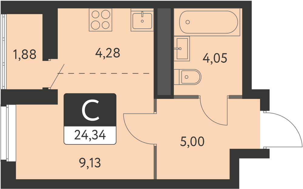 Общая площадь:23.4 м2