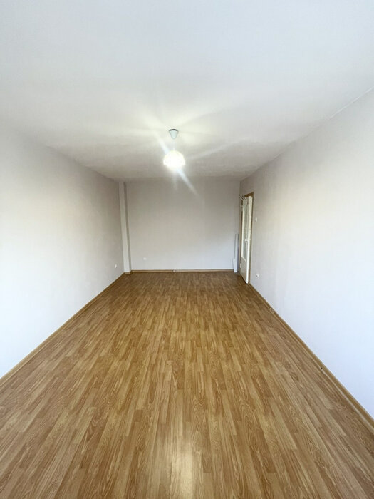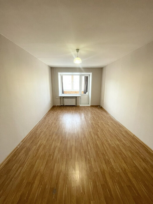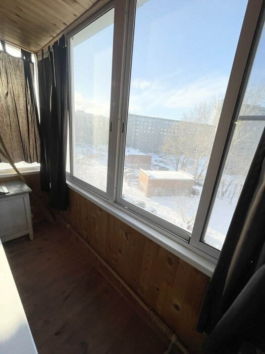 Квартира очень светлая, окна выходят во двор, просторная комната, балкон застеклен и обшит деревом.
