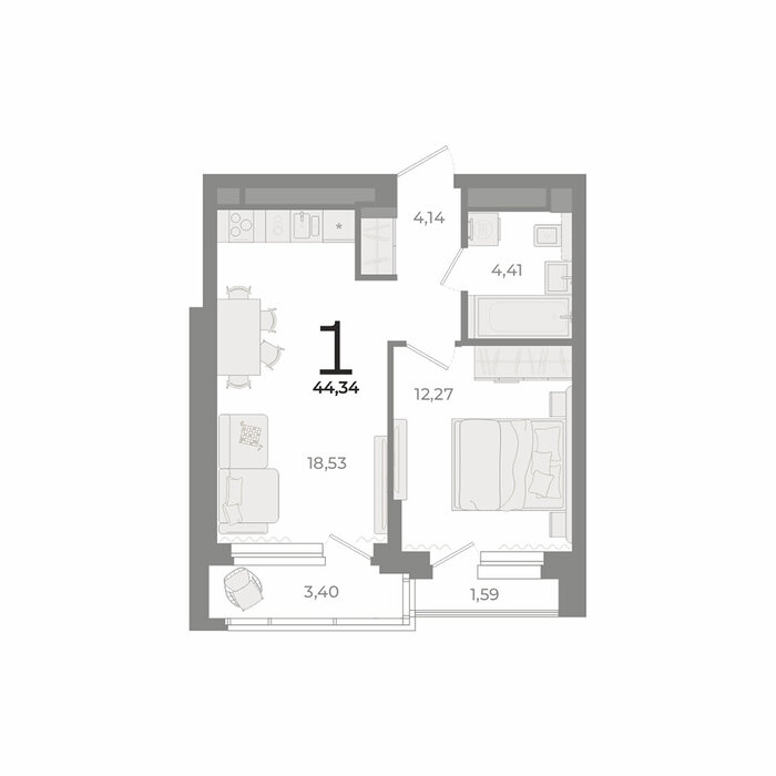 Общая площадь:44.34 м2