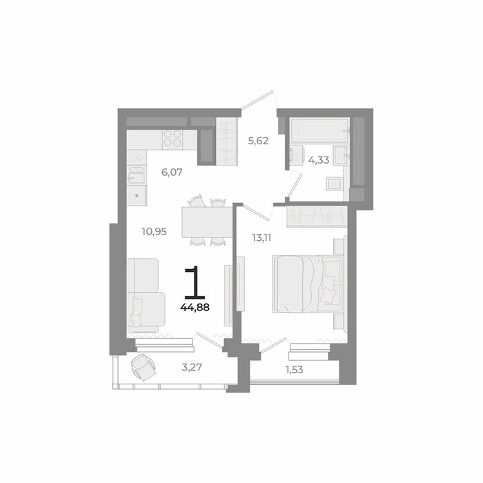 Общая площадь:44.88 м2