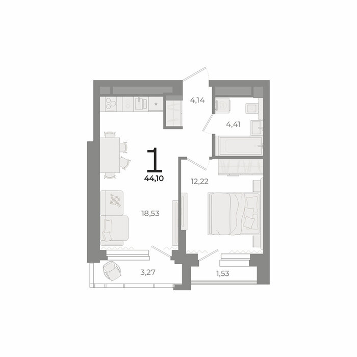 Общая площадь:44.1 м2