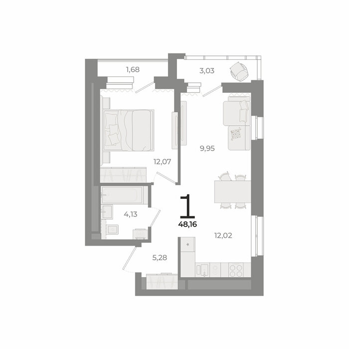 Общая площадь:48.16 м2
