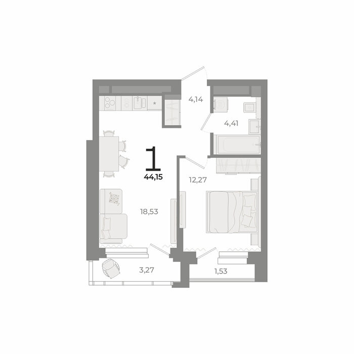 Общая площадь:44.15 м2