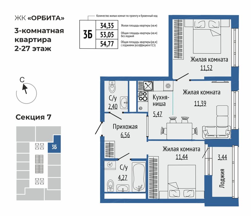 Продажа квартиры: Екатеринбург, ул. Екатеринбург, Вторчермет, Свердловская область, ЖК Орбита на Титова (Дом 2 (секция 3))