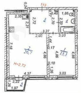 Екатеринбург, ул. Космонавтов, 26А (Эльмаш) - фото квартиры 21 октября 2022 90 дн. 1 44.8 25/27 5 600 000