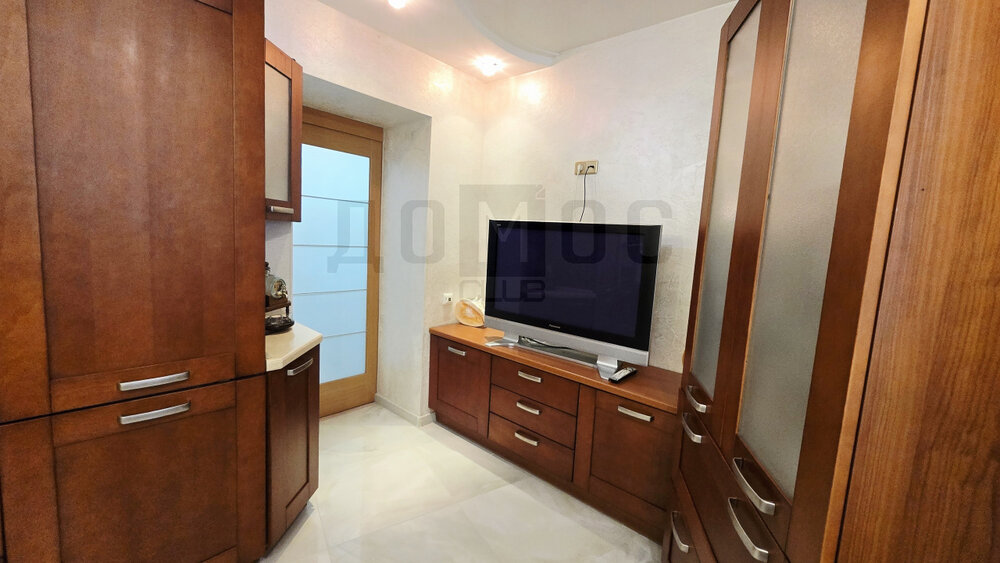 2 балкона на разные стороны дома, утром солнце с одной стороны, вечером с другой- поэтому всегда в квартире светло. В квартире все делалось для себя, с использованием дорогих стройматериалов европейских производителей, сантехника и санфаянс премиум-класса. В коридоре огромный встроенный шкаф-купе «Командор», есть большая вместительная гардеробная. Натяжной потолок с освещением «Звездное небо». Большая туалетная комната с большой ванной, новый бойлер «Полярис», место под стиральную машинку, полотенцесушитель, туалетный стол со шкафчиками для прекрасных дам, вытяжка, дополнительный свет на ванной. В спальне один из балконов, на котором сделаны 3 полки для хранения вещей, шторы открываются и закрываются с выключателя, дизайнерский шкаф с зеркалами и 2 прикроватных светильника. Второй балкон на кухне. Гарнитур сделан по спецзаказу, встроенная посудомойка «BOSH», плита с керамической панелью на 4 конфорки «BOSH». вытяжка, ниша под холодильник, свет по всему периметру, светильники. Стояки на кухне поменяны 3 года назад. В зал дверь-ширма на колесиках, теплый пол с керамической плиткой, встроенный электрокамин, дополнительный свет, встроенные в потолок колонки «Звук вокруг». В 3 комнате японские шторы, люстра с пультом. На всех окнах стоят замки, защита для детей!
