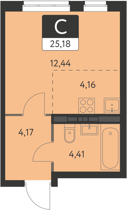 Общая площадь:25.18 м2