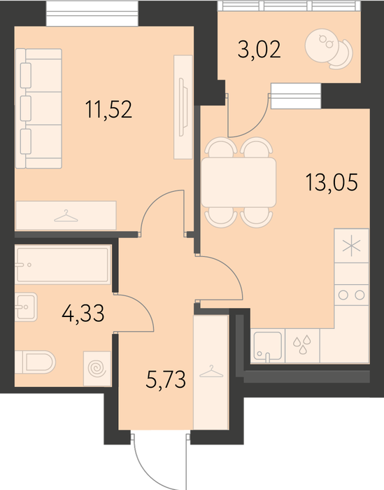 Продается 1-комнатная квартира площадью 35.81 кв.м. от девелопера «Академический» в жилом квартале «Первый Академ». Срок сдачи дома в 2028 году. Выгоды и скидка напрямую от застройщика.