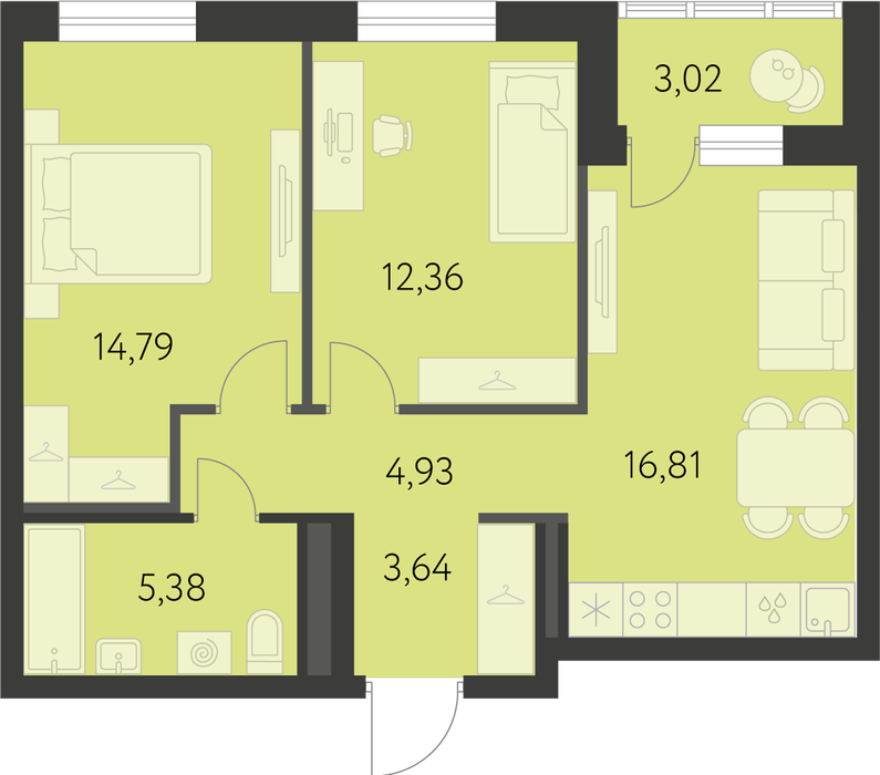 Общая площадь:58.87 м2