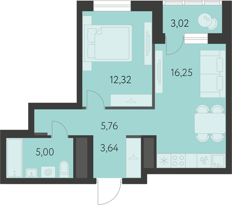 Общая площадь:44.48 м2