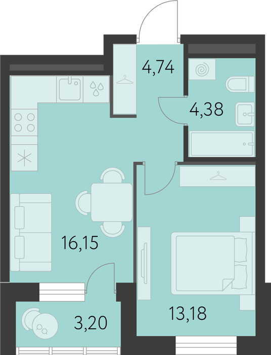 • 1-к квартира, Вильгельма Де Генина, 3.6.1, ЖК "Первый Академ"