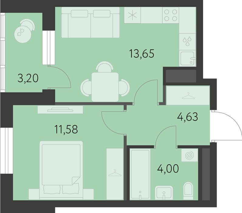 Общая площадь:35.46 м2