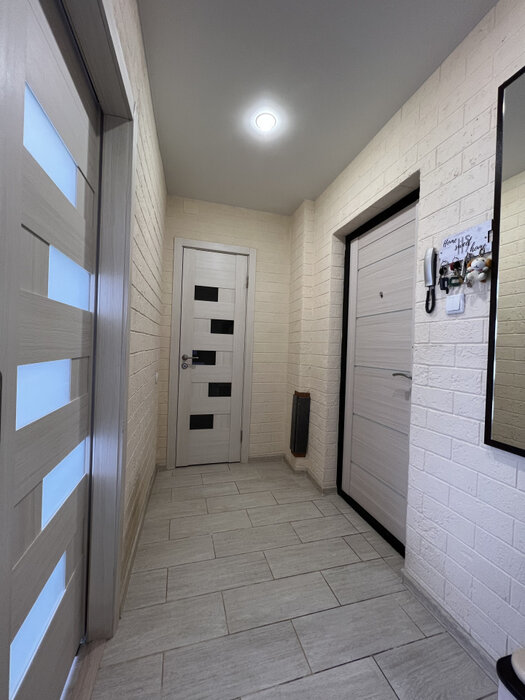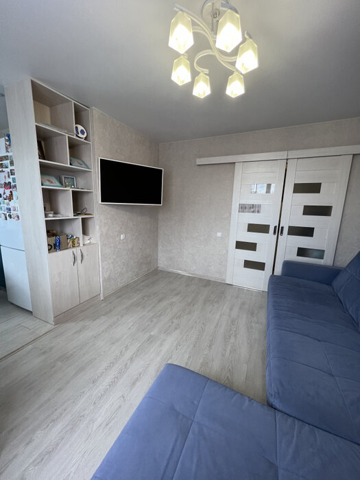 В квартире пространство грамотно спланировано для удобства и комфортного проживания, две комнаты изолированы, большая комната совмещена с кухней. Хорошая дверь, окна пластиковые на две стороны дома. Санузел в кафеле, балкон обшит деревом и остеклен алюминиевыми рамами. Состояние - заезжай и живи.