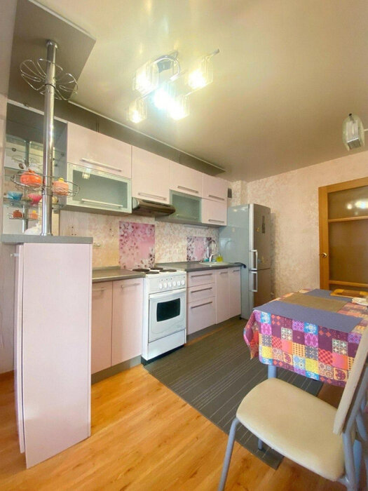Функциональная планировка: кухня-гостиная, комната, просторный сан.узел. Счетчики ХВС и ГВС, двухтарифный электросчетчик, теплосчетчик.