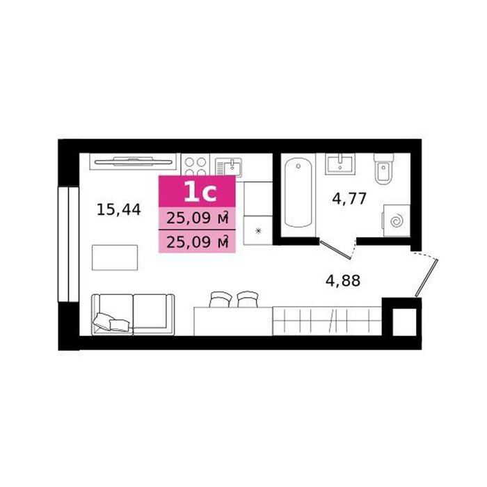 Общая площадь:25.09 м2