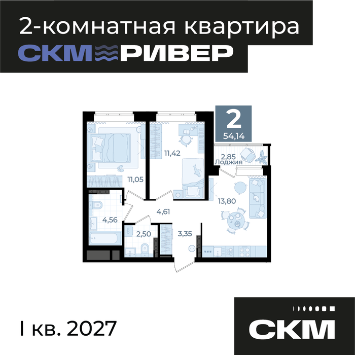 Продажа квартиры: Екатеринбург, ул. Щербакова, 154, корпус Секция 2, ЖК "СКМ Ривер" (Дом) (Уктус)