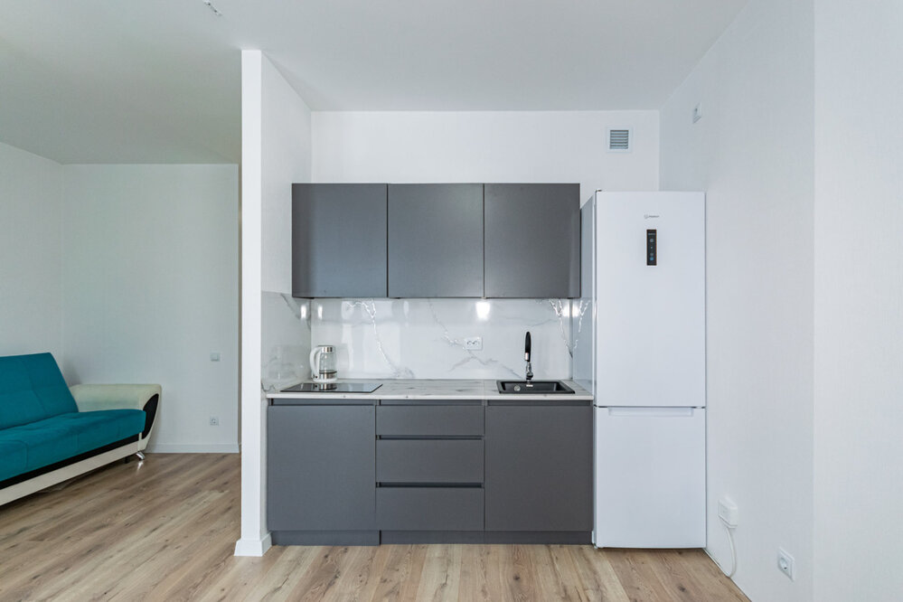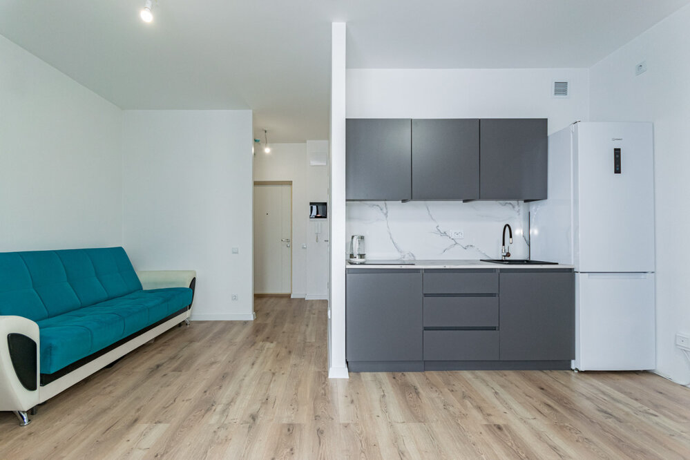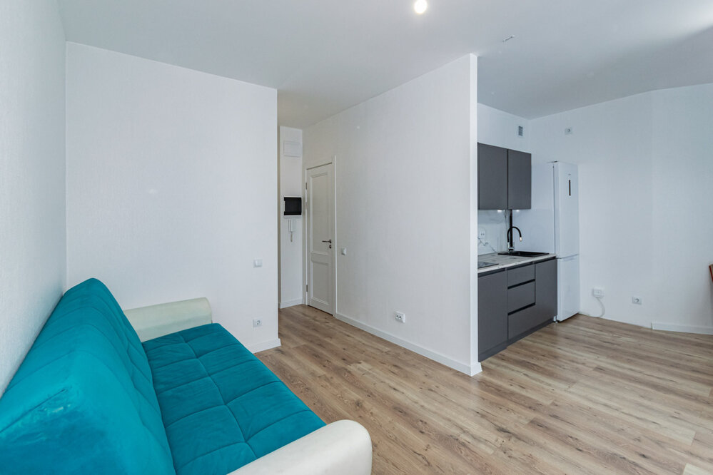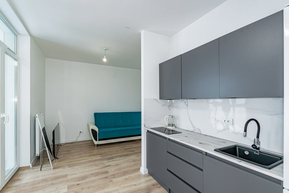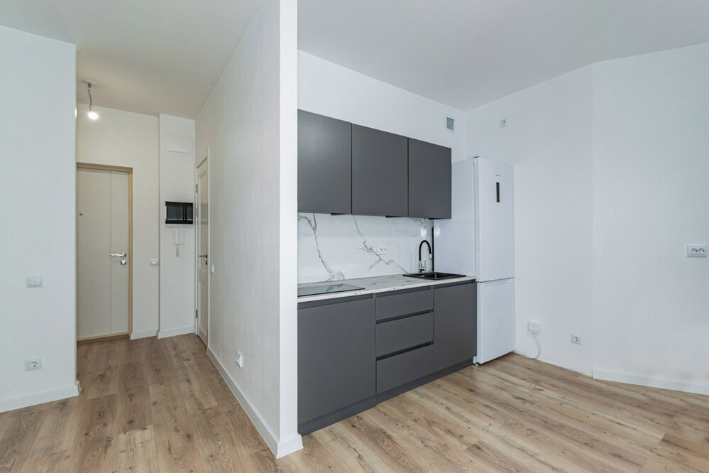 Функциональная планировка: кухня-гостиная, комната, просторный сан.узел. Счетчики ХВС и ГВС, двухтарифный электросчетчик, теплосчетчик.
