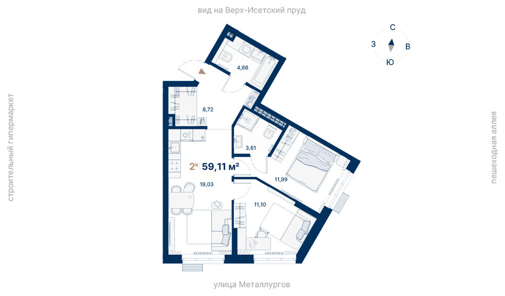 Продажа квартиры: Екатеринбург, ул. Улица Металлургов, ЖК Атлас Визион (Корпус С1.18) (ВИЗ)