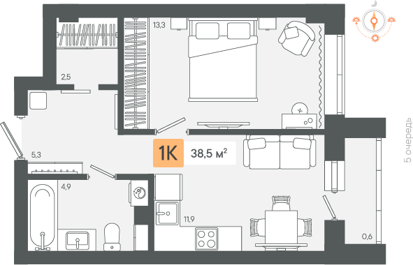 Общая площадь:38.53 м2