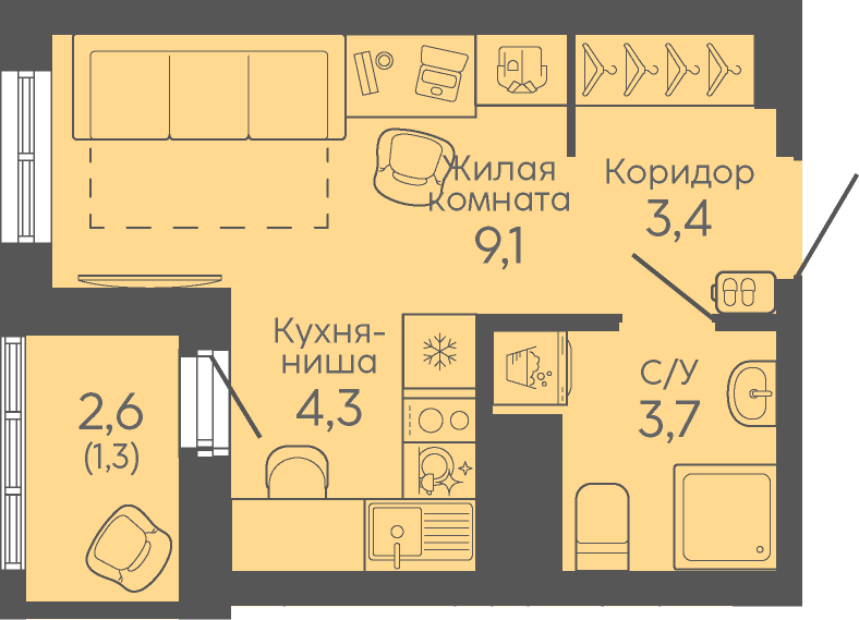 Общая площадь:21.8 м2