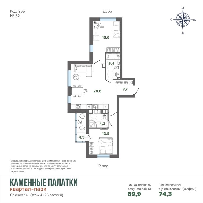Общая площадь:74.27 м2