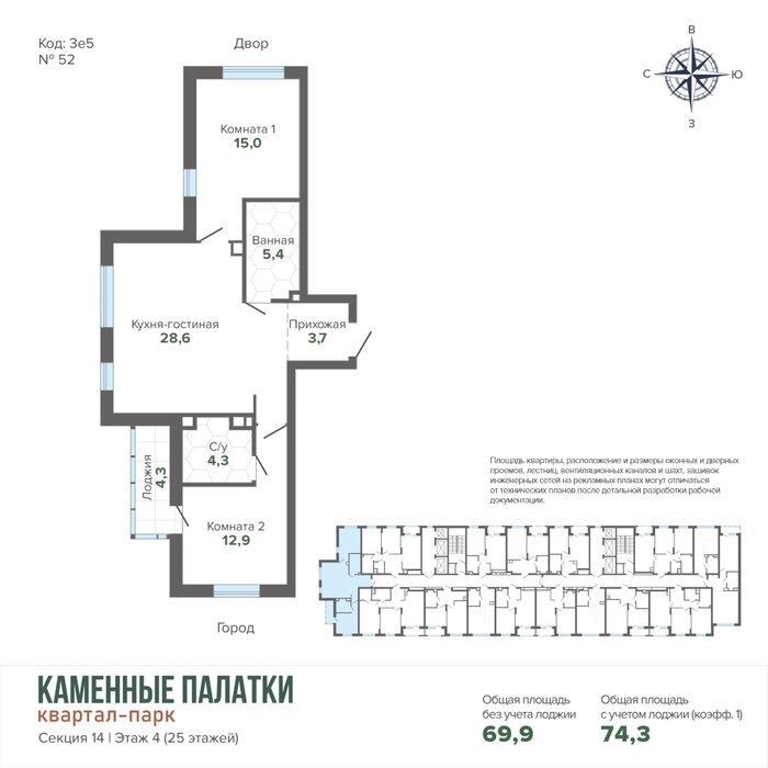 Этаж/Этажность дома:4 / 25