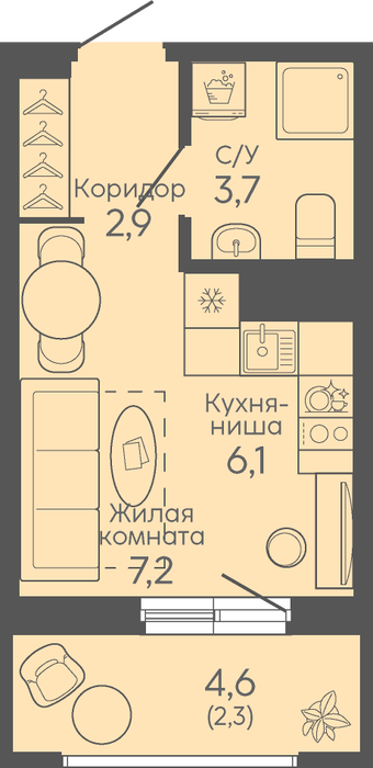 Количество комнат:квартира-студия