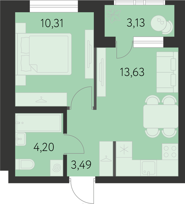 Общая площадь:33.2 м2