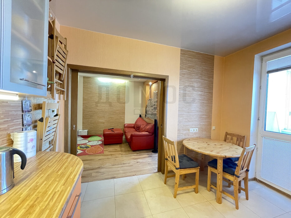 Квартира однокомнатная с уникальной планировкой, общая площадь- 45 кв. м. , комната- 25,3 кв.м. , кухня- 11,2 кв.м, 2 этаж, очень светлая, теплая, ремонт, в квартире остается:1.прихожая оборудована вместительным встроенным шкафом;2.комната с гардеробом (4м хранения от пола до потолка), кондиционер;3.кухонный гарнитур оборудован мойкой, варочной поверхностью, духовым шкафом и вытяжкой, холодильник;4.ванная и сан. узел совмещенные, отделка кафелем (сделаны выводы под ванну и под душевую кабину), большой зеркальный шкаф, стиральная машинка.