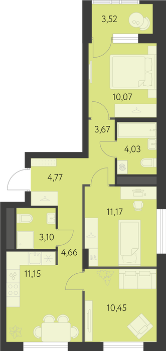 Продается 3-комнатная квартира площадью 64.83 кв.м. от девелопера «Академический» в жилом квартале «Первый Академ». Срок сдачи дома — 2 квартал 2028 года. Доступна субсидированная ипотека, выгодные условия и скидки напрямую от застройщика.