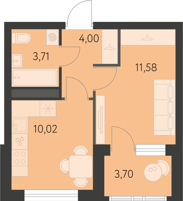 Общая площадь:31.16 м2