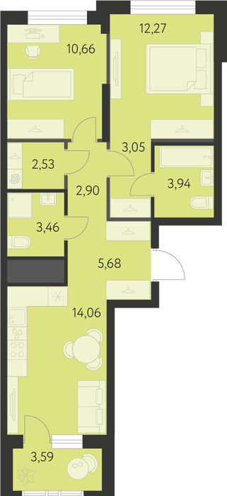 Общая площадь:60.35 м2
