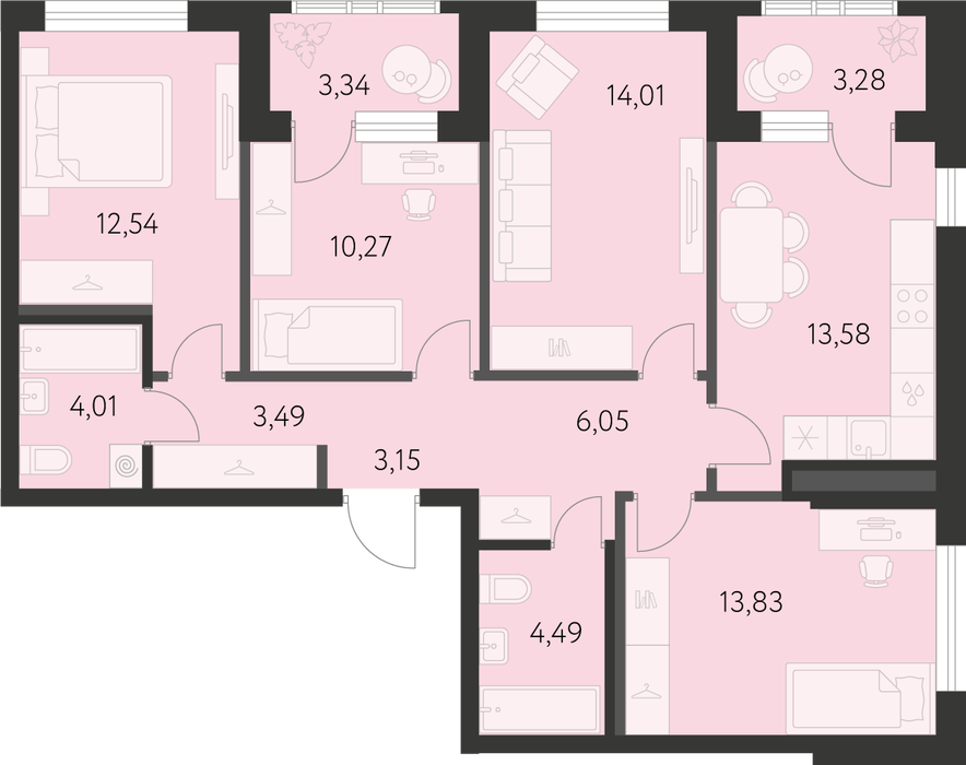 Продается 4-комнатная квартира площадью 88.73 кв.м. от девелопера «Академический» в жилом квартале «Первый Академ». Срок сдачи дома — 2 квартал 2028 года. Доступна субсидированная ипотека, выгодные условия и скидки напрямую от застройщика.