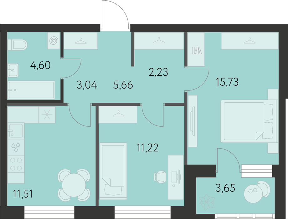 Общая площадь:55.82 м2