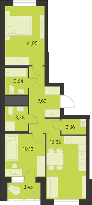 Общая площадь:61.96 м2