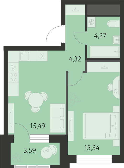 Общая площадь:41.22 м2