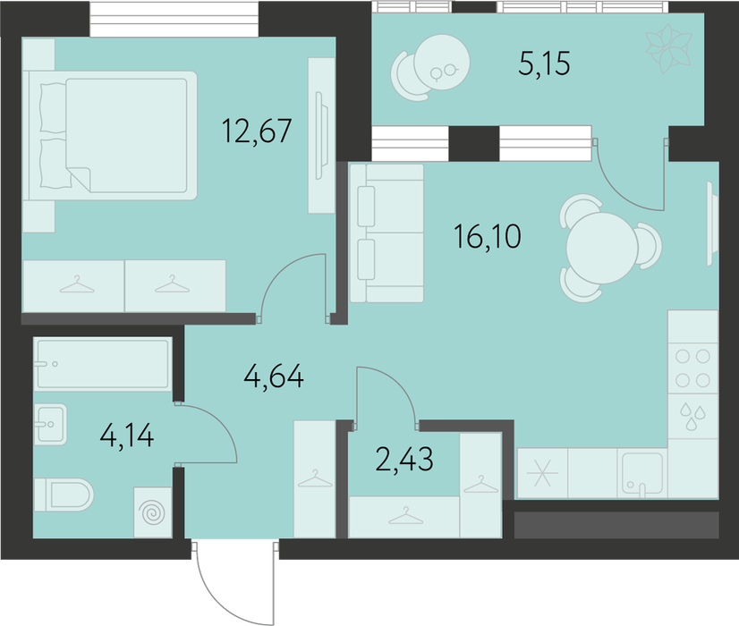 Общая площадь:42.56 м2