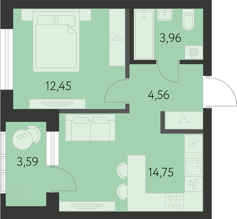 Общая площадь:37.52 м2