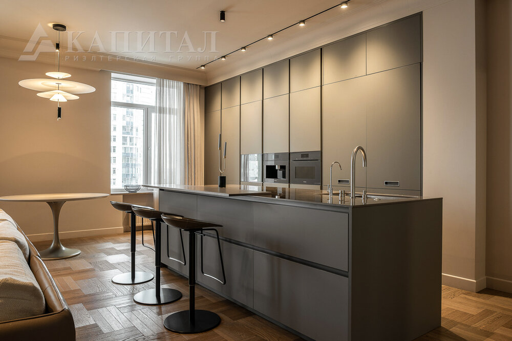 Дизайн-проект от известного дизайнерского бюро создает атмосферу безупречного стиля и релакса. В квартире реализована отделка и установлена техника высочайшего класса: