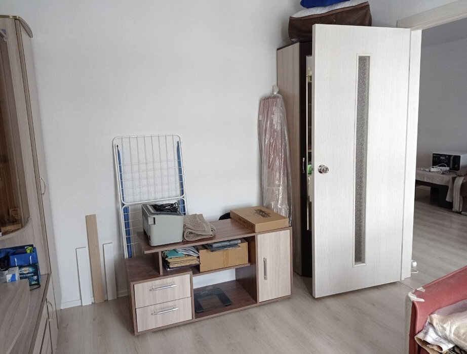 Квартира однокомнатная с уникальной планировкой, общая площадь- 45 кв. м. , комната- 25,3 кв.м. , кухня- 11,2 кв.м, 2 этаж, очень светлая, теплая, ремонт (заезжай и живи), в квартире остается:1.прихожая оборудована вместительным встроенным шкафом;2.комната с гардеробом (4м хранения от пола до потолка), кондиционер;3.кухонный гарнитур оборудован мойкой, варочной поверхностью, духовым шкафом и вытяжкой, холодильник;4.ванная и сан. узел совмещенные, отделка кафелем (сделаны выводы под ванну и под душевую кабину), большой зеркальный шкаф, стиральная машинка.