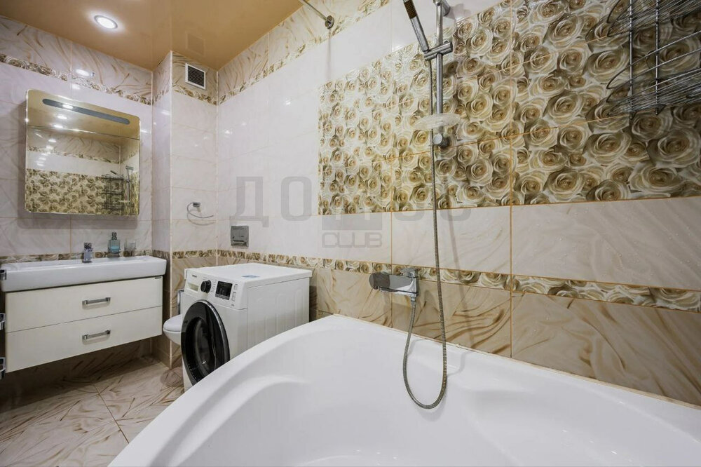 Вся мебель и техника остаются: телевизор, холодильник, стиральная машина, варочная панель, духовой шкаф, микроволновка, вытяжка, диван, кровать. Два санузла в кафеле и отдельная гардеробная.
