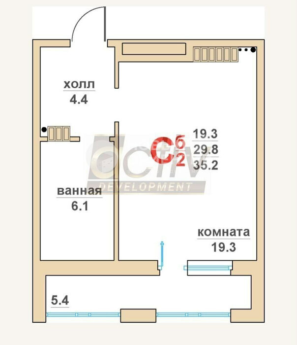Общая площадь:30.2 м2